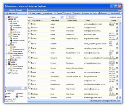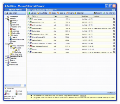 DeskNow offre una interfaccia web avanzata con menu e albero cartelle che facilita il passaggio dai client di posta tradizionali.