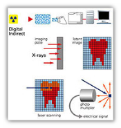 Dopo l'emissione di raggi X, sulla lastra ai fosfori viene "acquisita" l'immagine che, attraverso la tecnologia di scansione laser propria del sistema (es. DenOptix QST), viene successivamente convertita in formato digitale e visualizzabile sul monitor del PC .