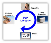 La tecnologia ai fosfori foto-stimolabili (PSP) utilizza schermi di memoria riutilizzabili con strato di registrazione ai fosfori per fissare l'esposizione radiografica. Le lastre PSP, flessibili e senza fili, nei differenti formati dentali, vengono posizionate con le stesse modalità delle pellicole tradizionali.